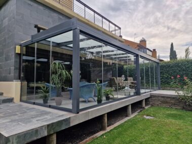 Nuestros cerramientos para porches con cortinas de cristal le permiten crear una nueva sala de estar en su hogar. Gracias a su aspecto y eficacia, transforman su terraza en un lugar más habitable y agradable para disfrutar todo el año. Con este tipo de cerramiento de porche puede despedirse del viento, la suciedad y el ruido. El mantenimiento es fácil y seguro, lo que convierte a las cortinas de cristal en un producto ideal para los cerramientos para terrazas y porches.